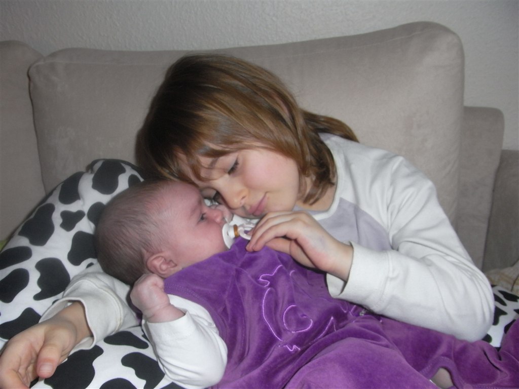 Ellers er hun et rigtig nemt barn. Hun falder i søvn om aftenen et sted mellem kl. 19 og 21. Hun sover til ca. kl. 2.30, bliver skiftet og ammet i sengen, hvorefter hun falder i søvn igen og sover til ca. kl. 6.30-7 stykker, så det passer perfekt med der de store alligevel skal op og i skole.