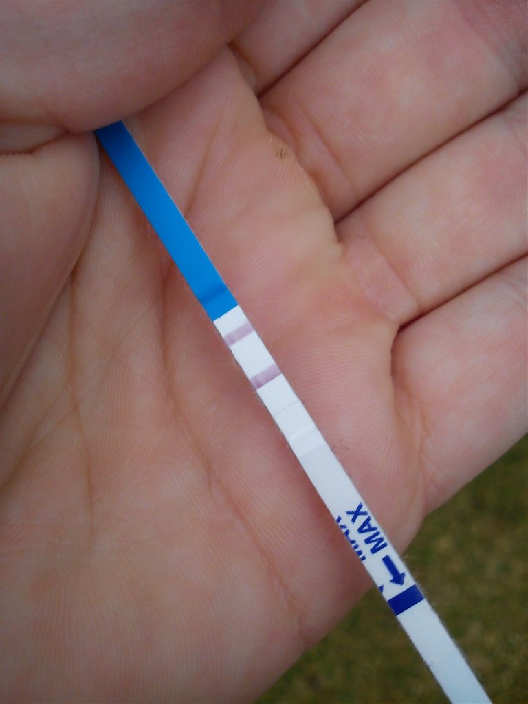 Men stregen er meget svag, så prøver igen imorgen tidlig med morgen urin. Prøvede idag ved 15 tiden, hvor der kom en svag lyserød streg.