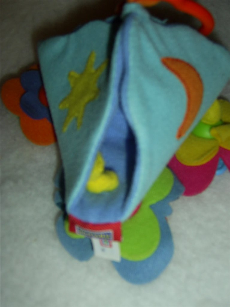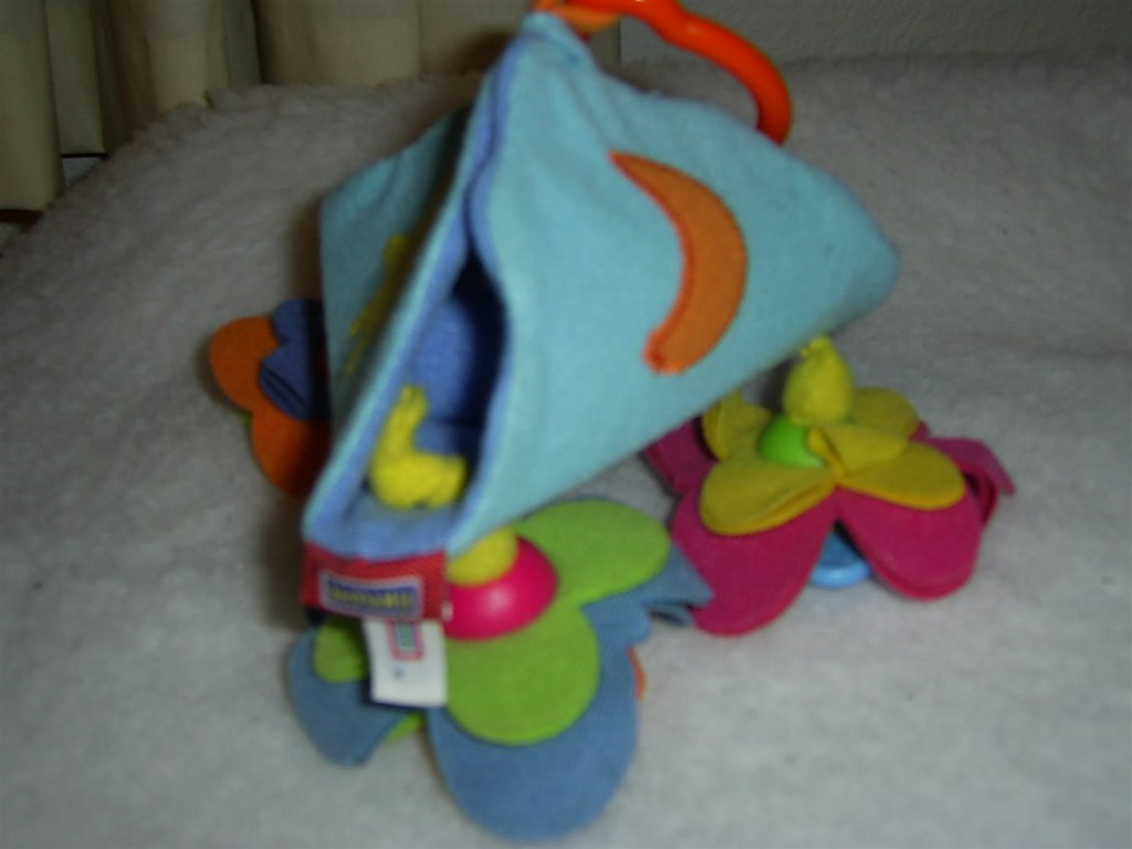 En slags musikuro for et lille barn som har en smule kontrol over arme og hænder. Barnet kan slå til legetøjet og så spiller det en melodi. Mange fine farver