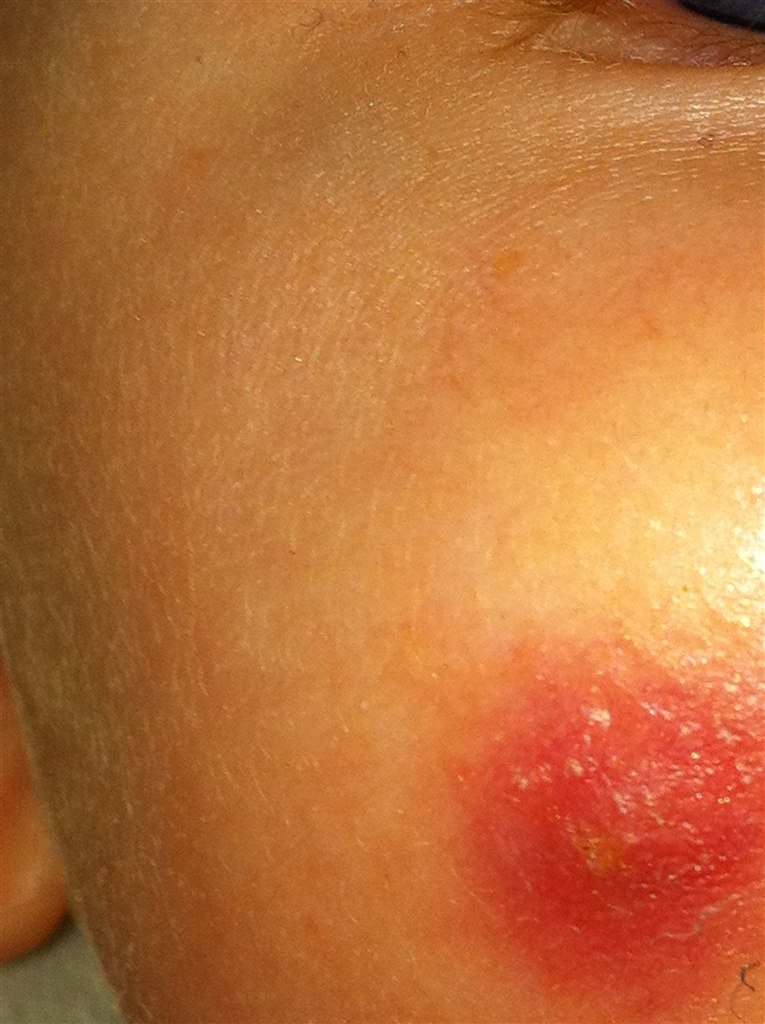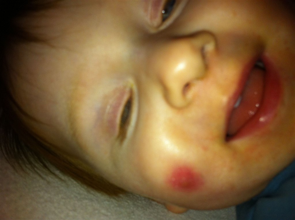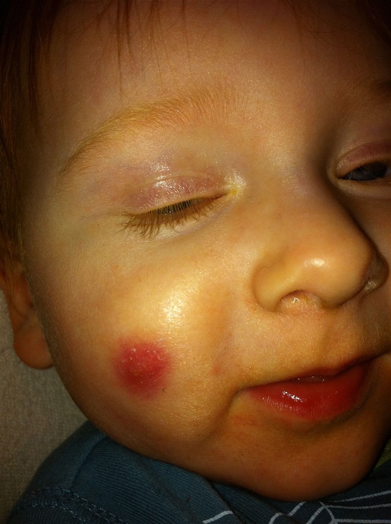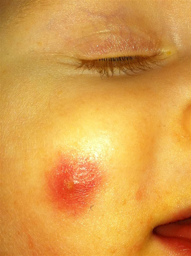 For en uges tid siden fik Nicolaj en rød knop på kinden og den er så bare vokset siden.. :/ den er rund og hård når man trykker lidt på den og der er lidt guligt at skimte.. derudover syns jeg den "skaller" lid... - hva hulen er det? En bums, hormon knop?