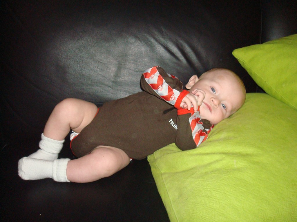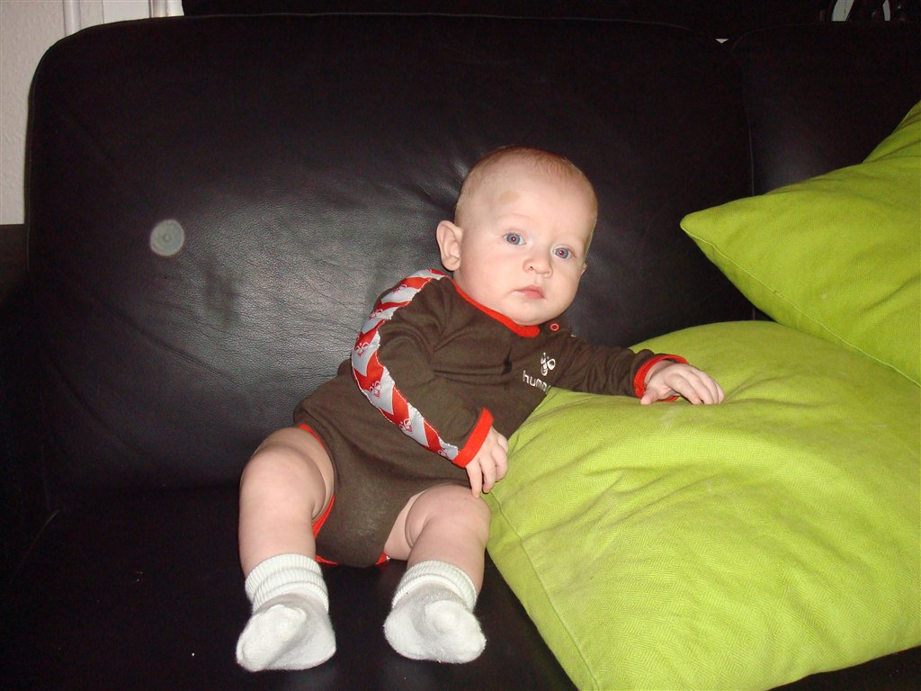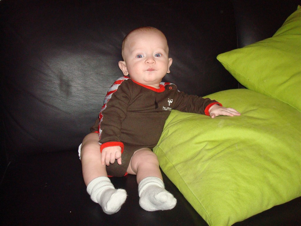 Liam vejer nu 7.7 og er 65cm lang..!! En go dejlig portion bassedreng der vil fremad i livet..!! Han har nu rullet fra mave til ryg og fra ryg til mave flere gange.. WOOOOOW altså..!! han har formået at sidde HELT SELV uden støtte - dog ikke længe måske 4 sek. Men der sad han fuldstændig rolig og kiggede rundt Det er dog ikke noget i øver herhjemme, det må sku ikke være for sundt for hans ryg tænker jeg ..!!