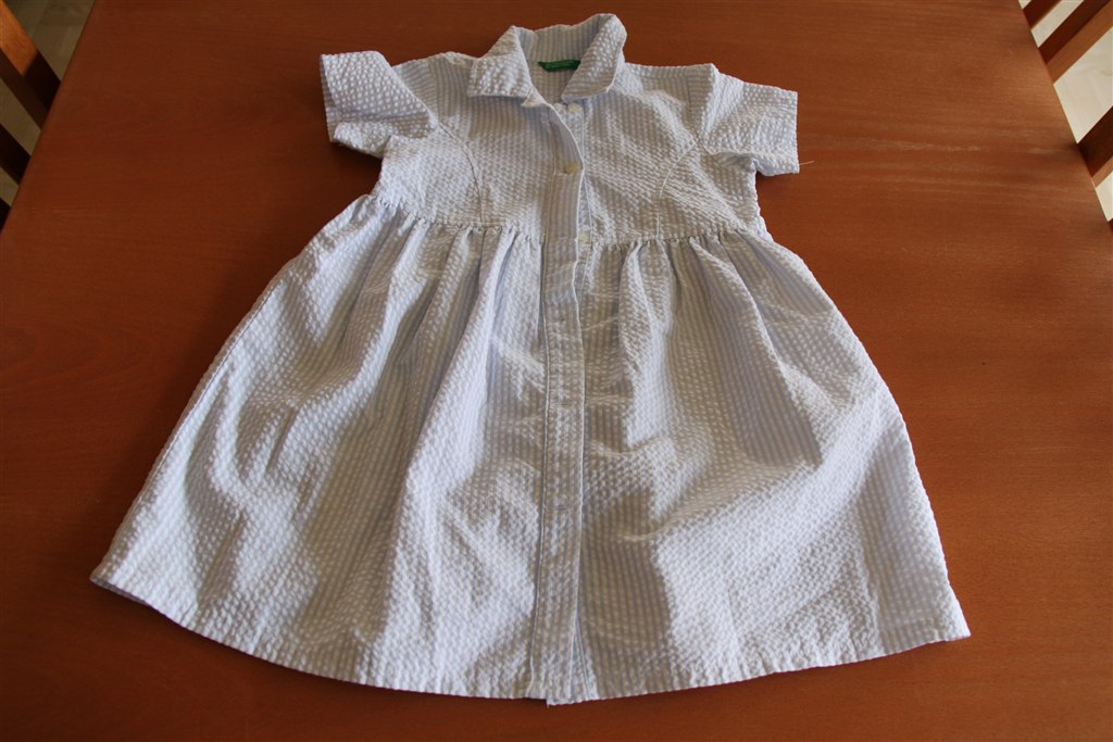 Sød Kjole fra Bennetton str. 90 i lyseblå stribet "bæk og bølge".