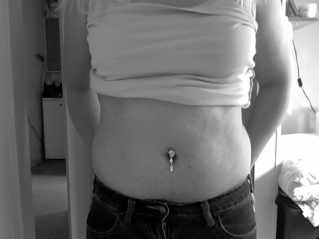Og min efter tre graviditeter hvoraf to var kejsersnit, en overvægt tabt som var 30 kg...så så min mave sådan her ud(jer herinde ved nok hvem jeg er men gider ikke have dem sådan ud i hele net-universet):
