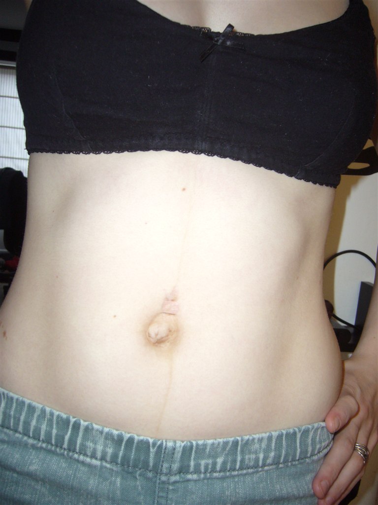 sådan ser min mave ud.. min navle ligner en hønserøv og er blevet mærkelig brun i det... men ellers er jeg faktisk meget tilfreds..