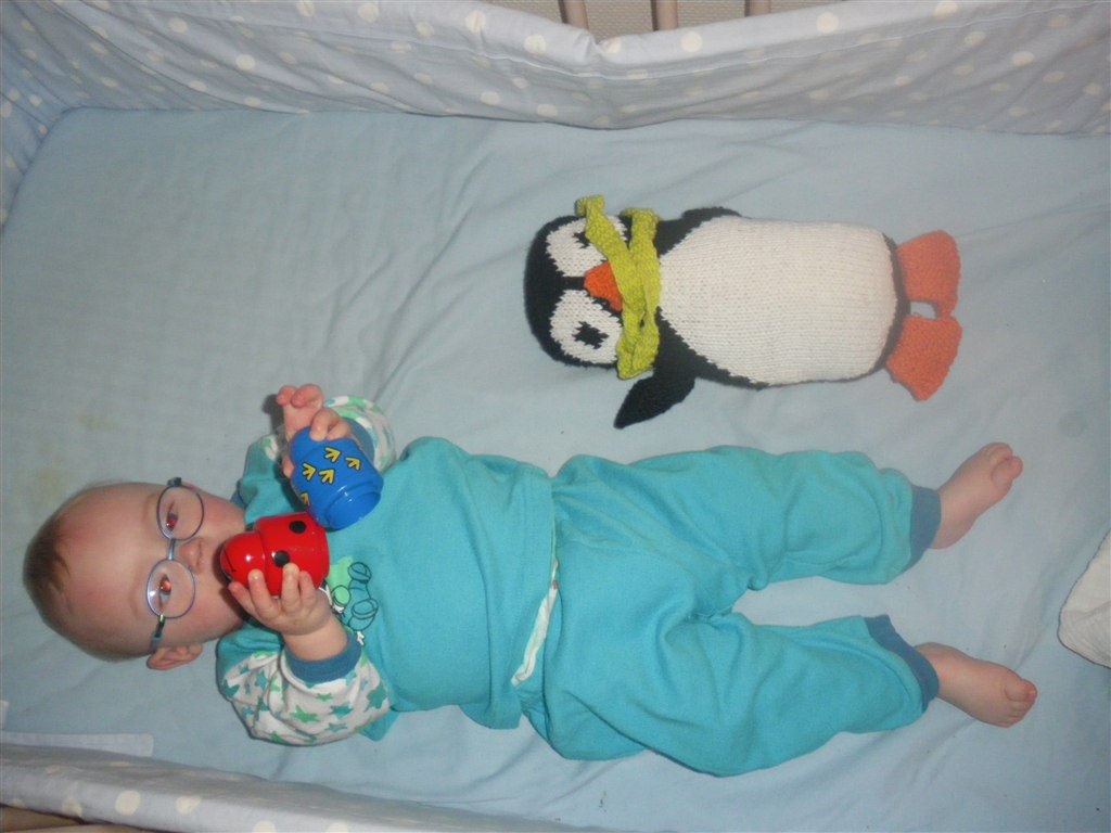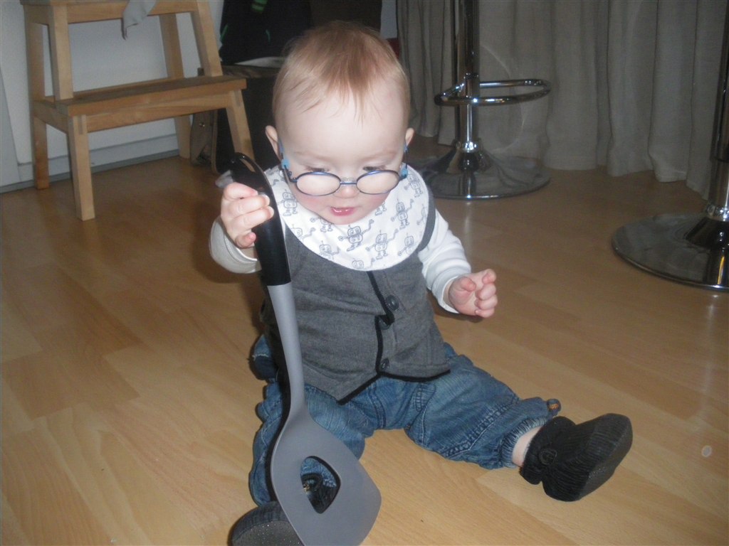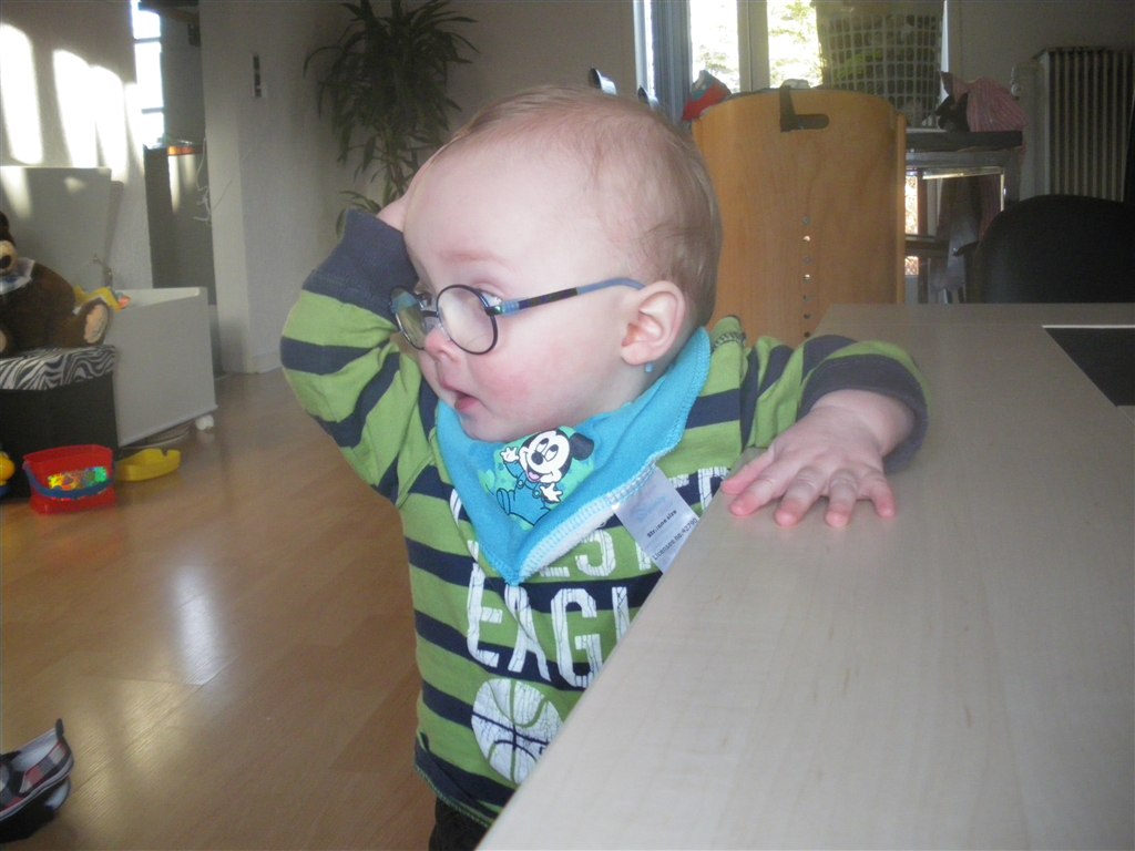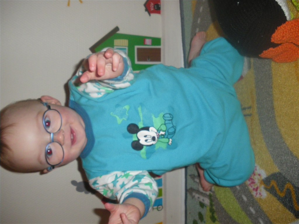Han rejser sig op af alt, og går langt ting og med gå vogn. Hans balance er dog ikke så god endnu, så når han prøver at gå selv, giver det lidt blå mærker og meget skæve briller.