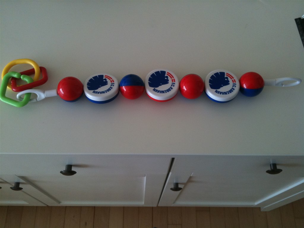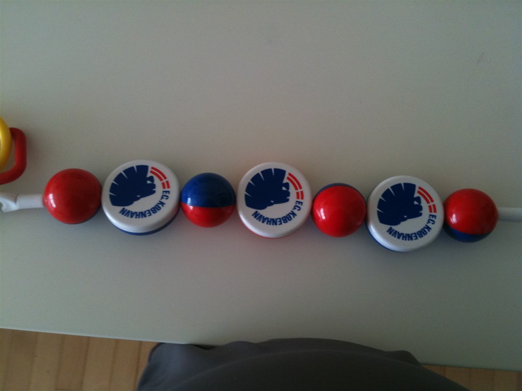 ja jeg har F.C.K legetøj til legetæppet til salg. der billeder vedlagt. de tre sidste ringe på den kan tages af men vi haft dem på så hun kunne nå dem da hun var mindre.. liw var rigtigt glad for den..