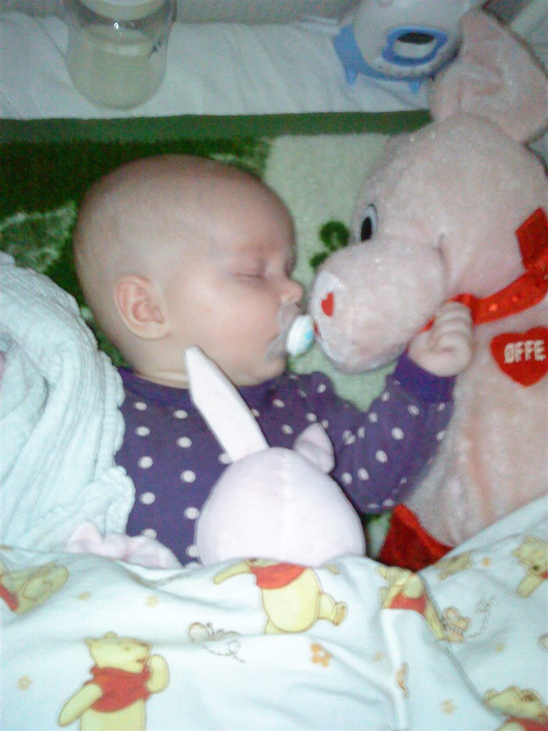 Mileva skriver: Hehe, det er blevet hendes 'sutte-klud' :p Hun vil bare ikke sove uden den - så mor her måtte jo overgi sig og lade hende ha' den :p