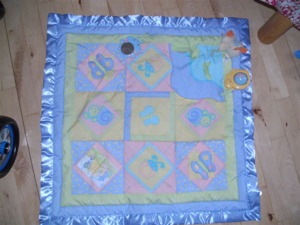 aktivitets tæppe med lille spejl, kylling der kan spille en melodi og en snegl super lækkert tæppe