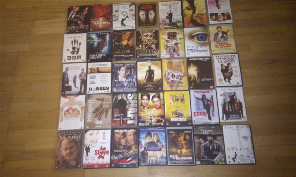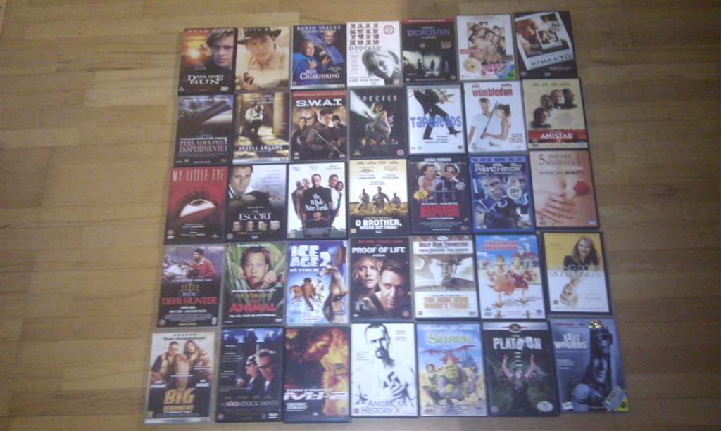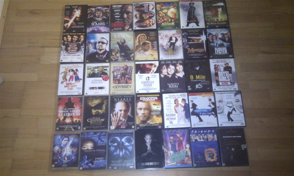 Manden og jeg har lavet den store oprydning i vores dvd-film og har derfor en kasse med 158 dvd-film til salg. Filmene er en god blanding af tøsefilm og herrefilm (se vedhæftede billeder). Nogle af filmene fremstår som nye, andre er lettere brugte (alle virker)..