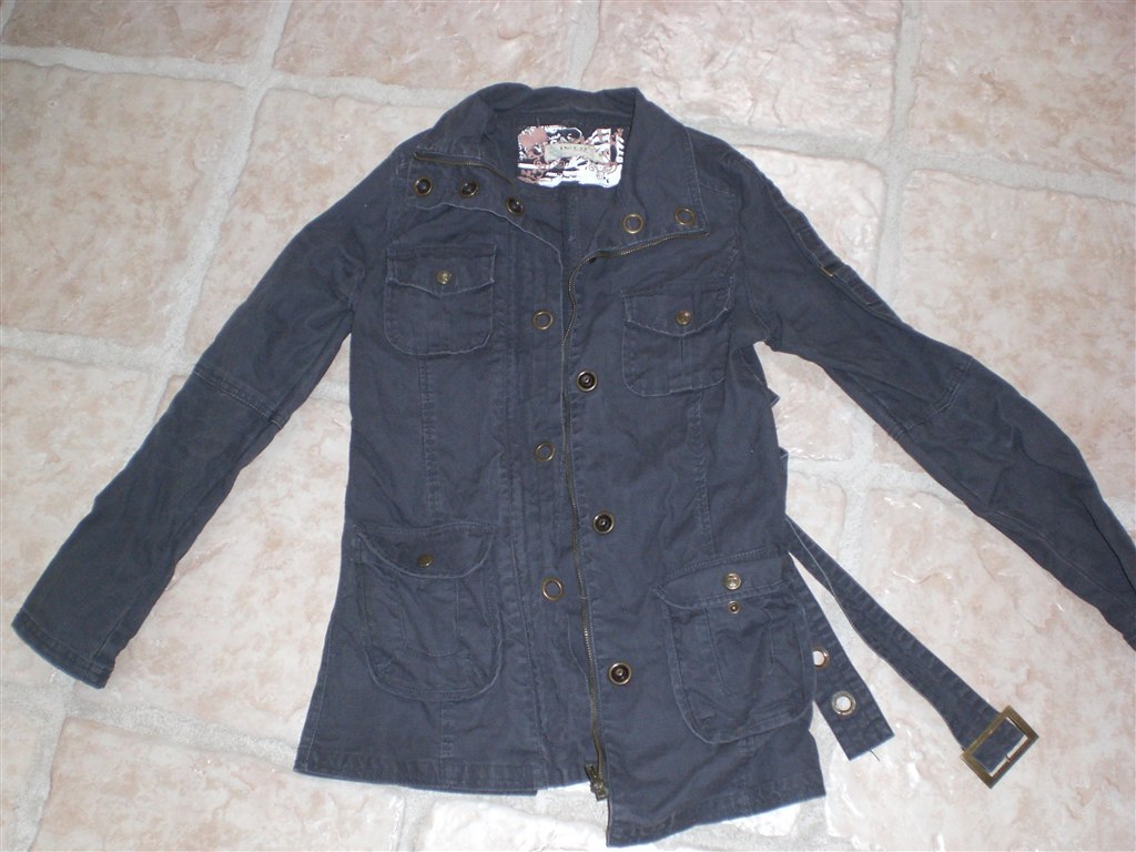 Støvet koksblå/grå sommerjakke fra Ichi str S. Der er gået et par sting ved lommen. Nypris 499