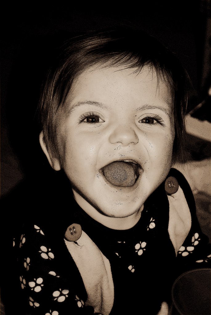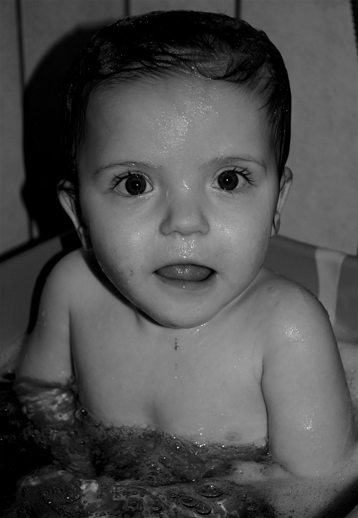 AnneBJ skriver: Hun er så sød - og nej hvor hun "ligner sig selv" allerede som helt spæd... Altså mund og øjne - der er så meget udtryk!