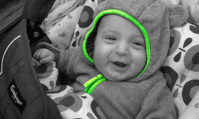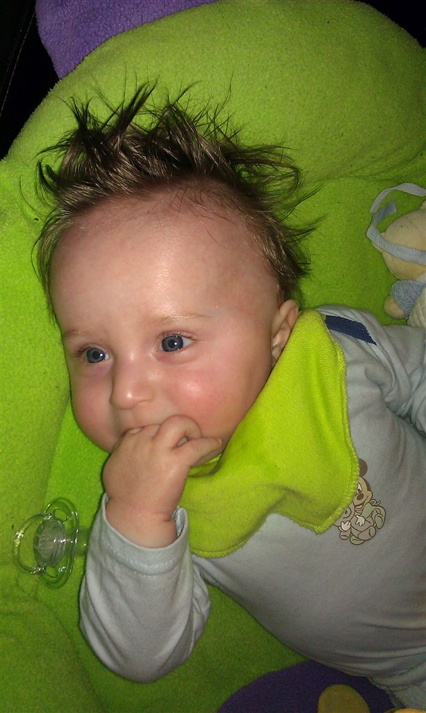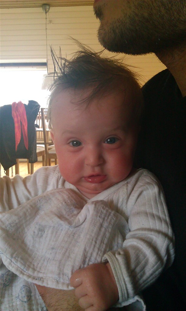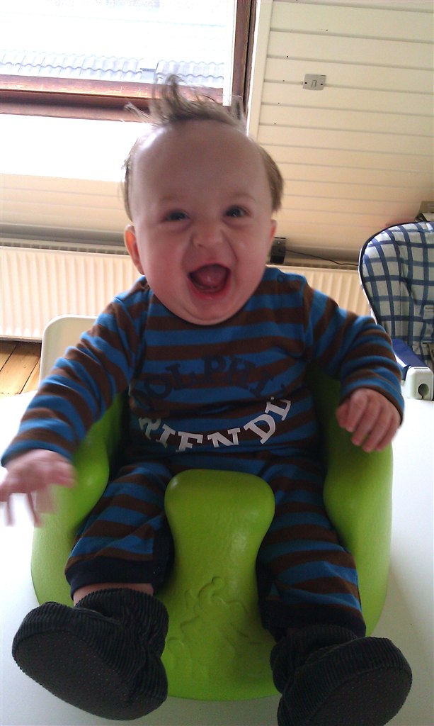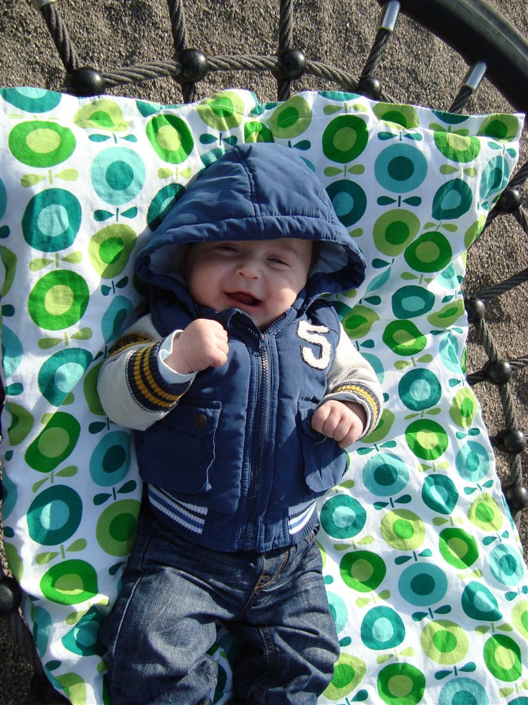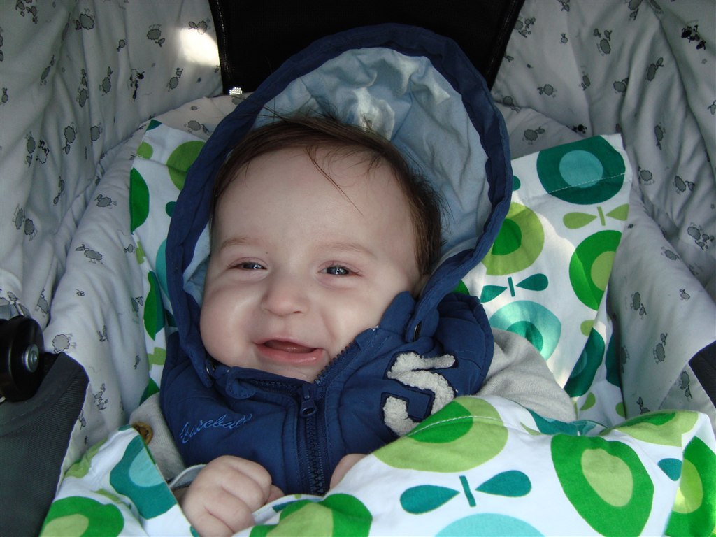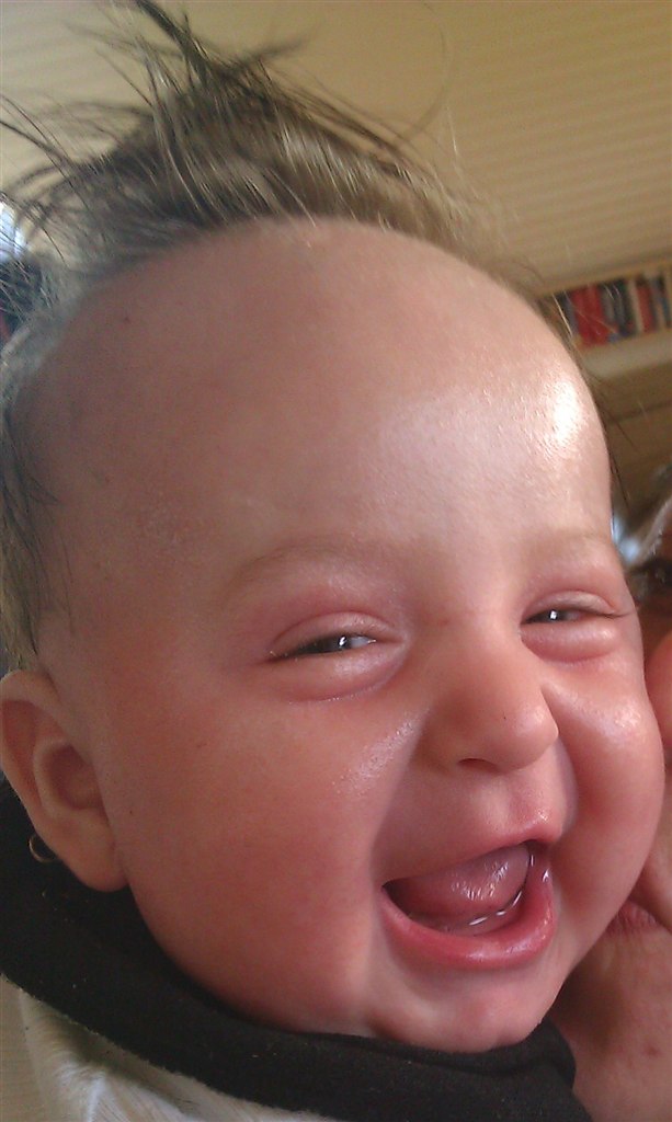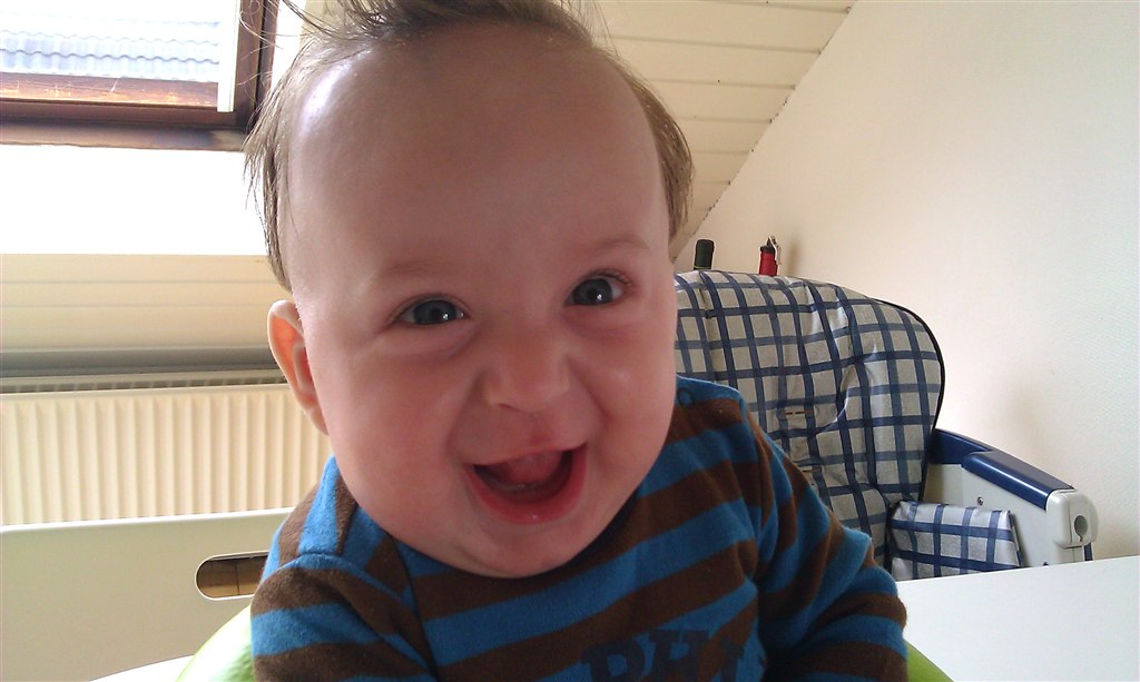 Han sover stadig hele natten igennem, er altid glad og smiler hele tiden! Jeg kan ikke klage overhovedet!